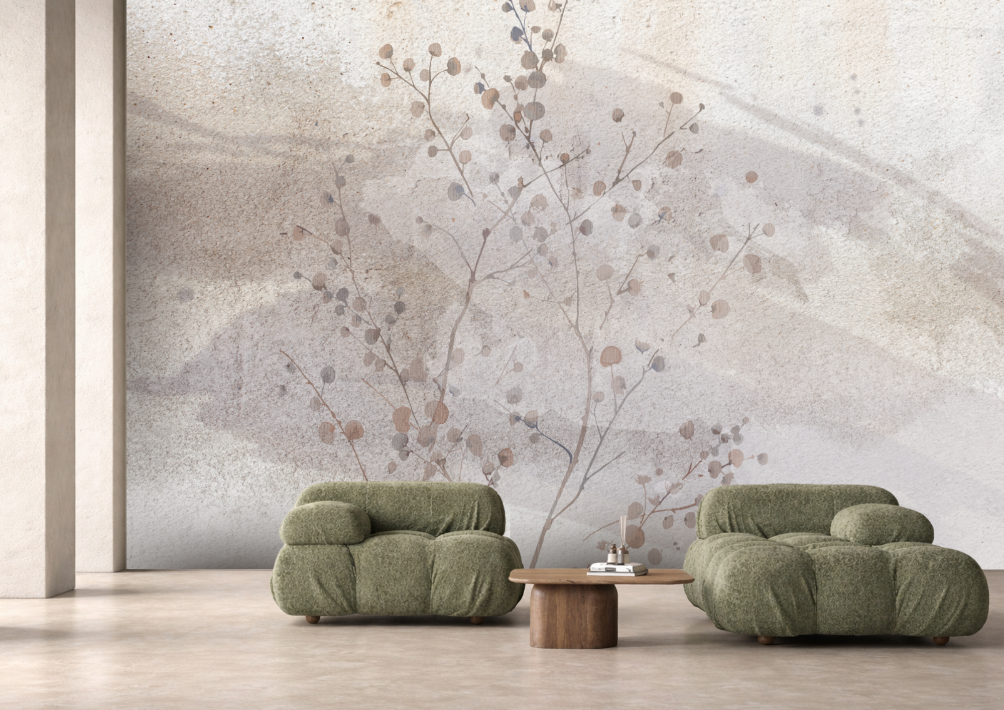 Tapeta Eterična odiše lakoćom i prozračnošću kroz nježne biljne elemente. Savršena za interijere koji traže smiren i sofisticiran ugođaj.