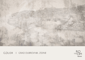Tapeta donosi impresiju dubrovačkih zidina kroz nježne, gotovo eterične slojeve tekstura i crteža. Spoj povijesti i umjetničke interpretacije prostoru daje osjećaj snage, trajnosti i tihe mediteranske elegancije.