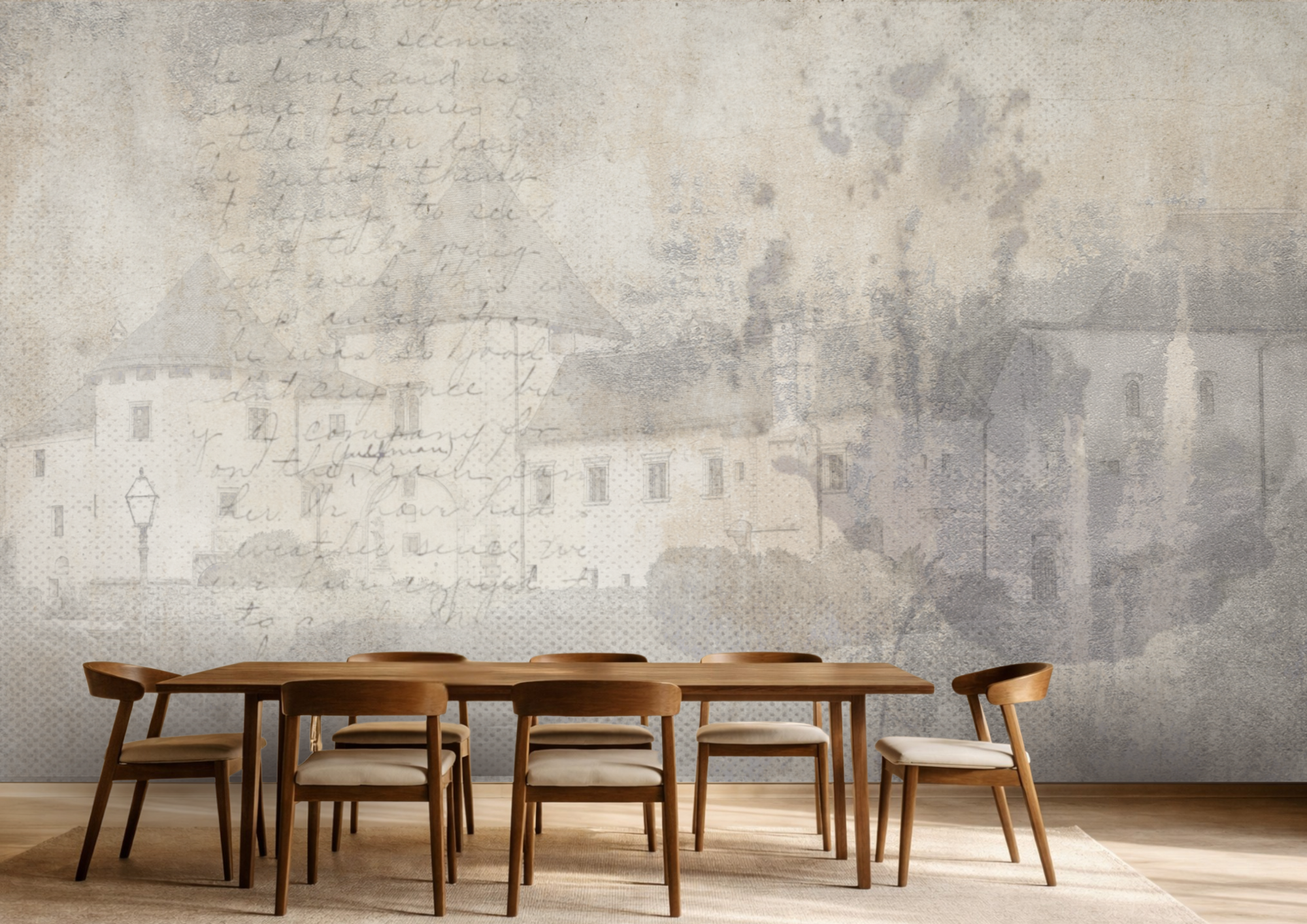 Suptilni obrisi varaždinskih veduta isprepliću se s teksturama i rukopisnim tragovima prošlih vremena. Ova tapeta odiše elegancijom baroka i donosi tišinu povijesti u suvremeni prostor, stvarajući atmosferu profinjenosti i kulturnog nasljeđa.