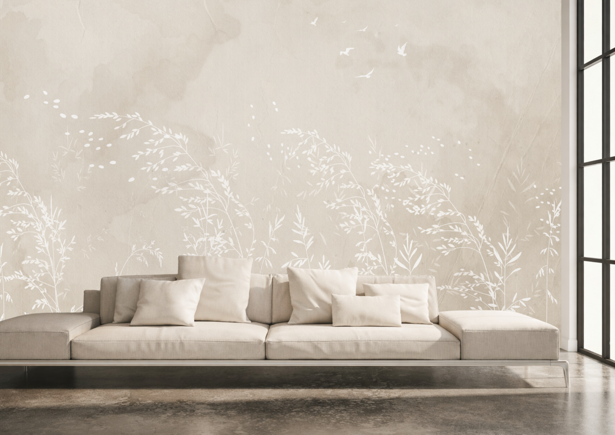 Tapeta Južina donosi mekane pokrete i tople tonove inspirirane blagim vjetrom. Idealna za stvaranje toplog i umirujućeg ambijenta.