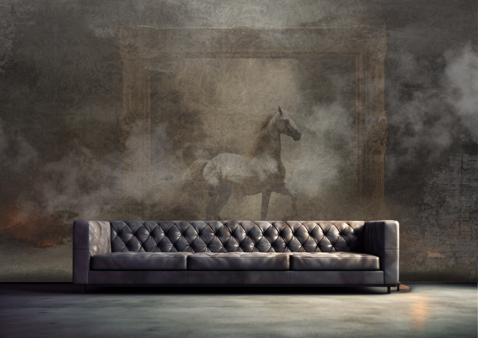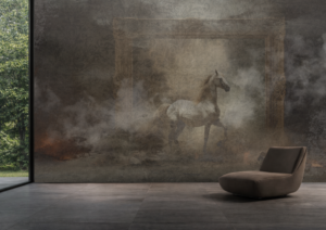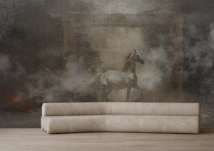 Sloboda prikazuje snagu trenutka kada se ruše granice i otvara novi prostor. Konj koji izlazi iz okvira simbolizira instinkt, hrabrost i pokret prema vlastitom putu. Tapeta unosi dramatičnu energiju i osjećaj oslobađanja u interijer.